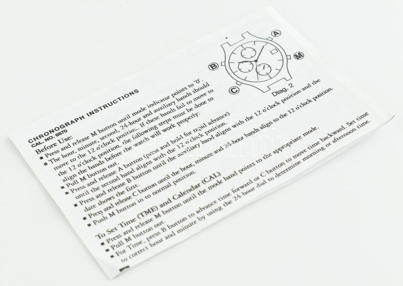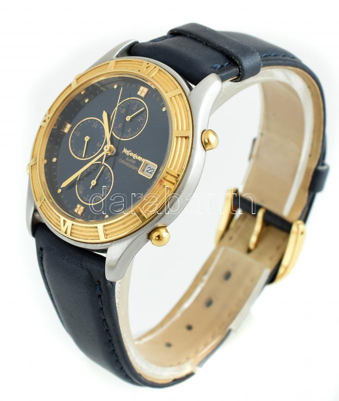 Yves Saint Laurent kronográfos férfi kvarc karóra, vízálló, ébresztő és dátum funkcióval, eredeti bőr szíjjal, elemmel, működő, jó állapotban, angol nyelvű leírással, d: 28 mm