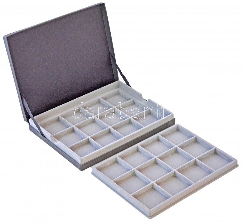 Beschreibung: Éremtartó kazetta egy kivehető tálcával, összesen 24 férőhellyel (50x50mm), használt, de újszerű állapotban