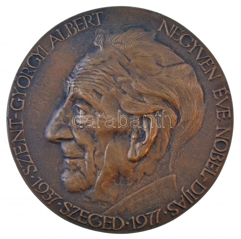 Lapis András (1942- ) 1977. "Szent-Györgyi Albert negyven éve Nobel-díjas - 1937 Szeged 1977" kétoldalas, öntött bronz plakett a hátoldalon a C-vitamin szerkezeti ábrájával (122mm) T:1-