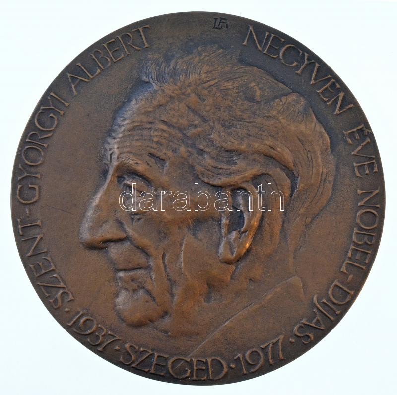 Lapis András (1942- ) 1977. "Szent-Györgyi Albert negyven éve Nobel-díjas - 1937 Szeged 1977" kétoldalas, öntött bronz plakett a hátoldalon a Citromsav (Szent-Györgyi-Krebs) - ciklus ábrájával (122mm) T:1-