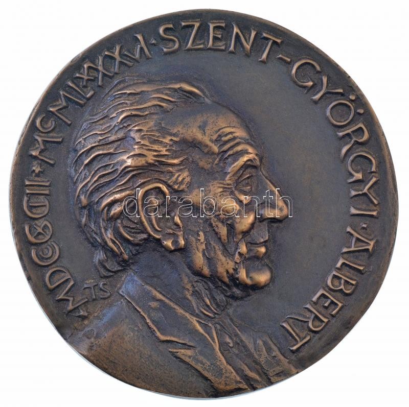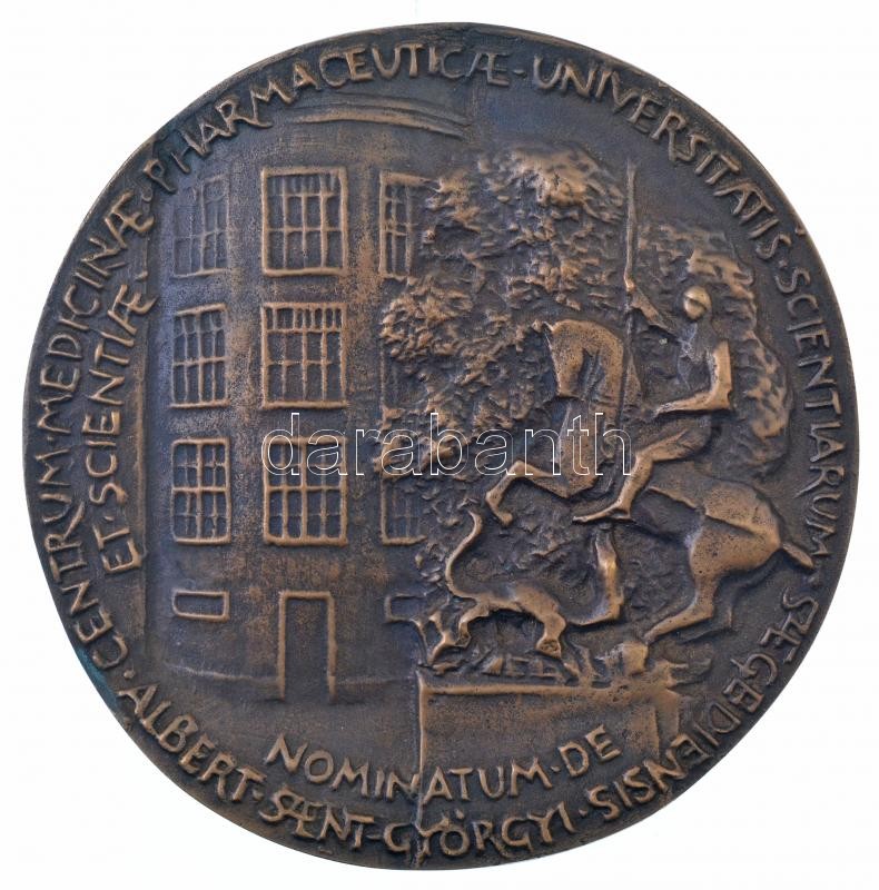 Tóth Sándor (1933- ) "Szent-Györgyi Albert" kétoldalas, öntött bronz plakett "MDCCCCIII - MCMLXXXVI SZENT GYÖRGYI ALBERT / CENTRUM MEDICINAE ET SCIENTIAE PHARMATCEUTICAE UNIVERSITATIS SCIENTIARUM SZEGEDIENSIS - NOMINATUM DE ALBERT SZENT-GYÖRGYI" (101mm) T:2