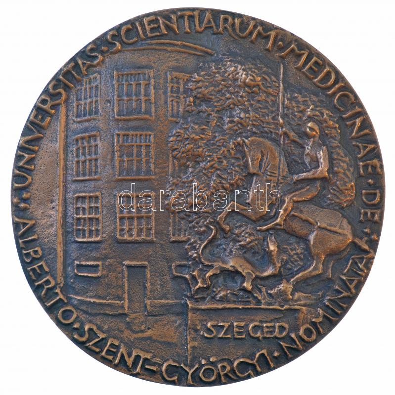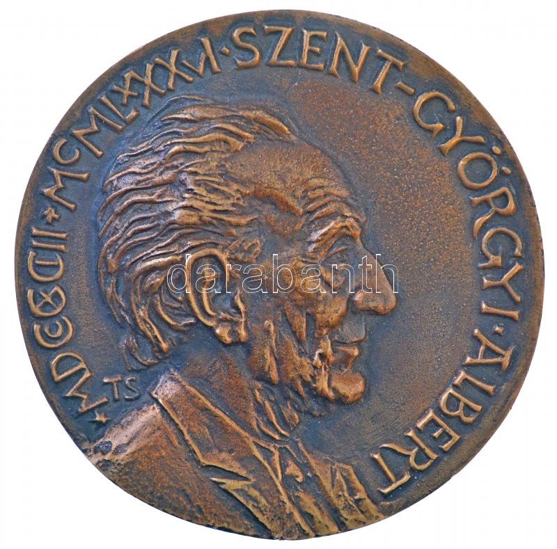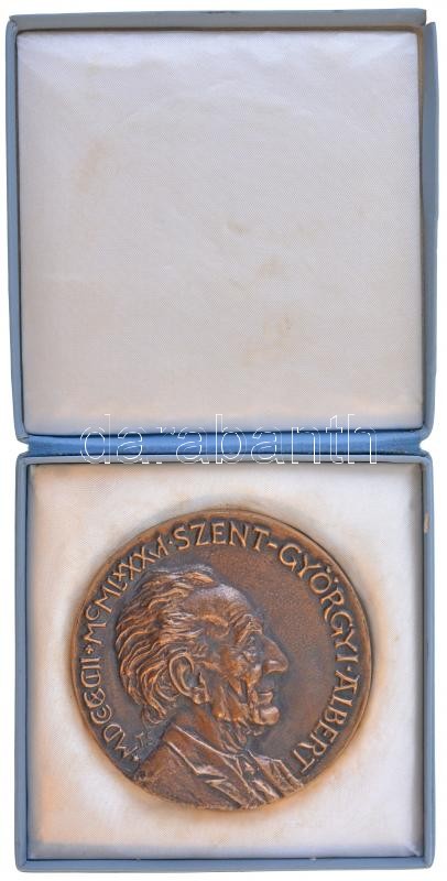 Tóth Sándor (1933- ) "Szent-Györgyi Albert" kétoldalas, öntött bronz plakett, eredeti sérült tokban "MDCCCCIII - MCMLXXXVI SZENT GYÖRGYI ALBERT / UNIVERSITAS SCIENTARUM MEDICINAE DE ALBERTO SZENT-GYÖRGYI NOMINATA" (98mm) T:1,1-
