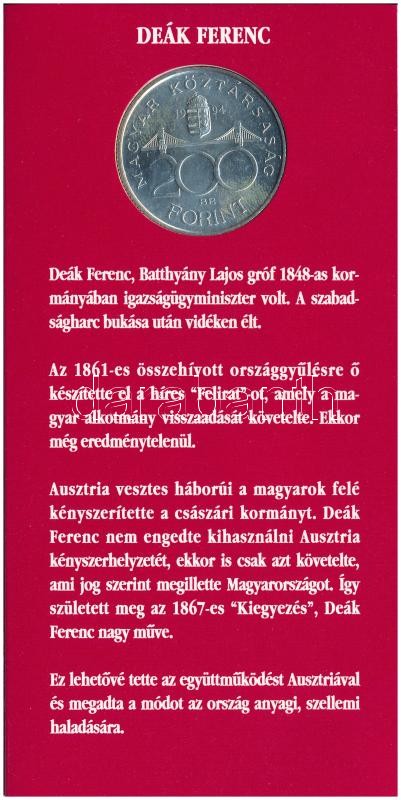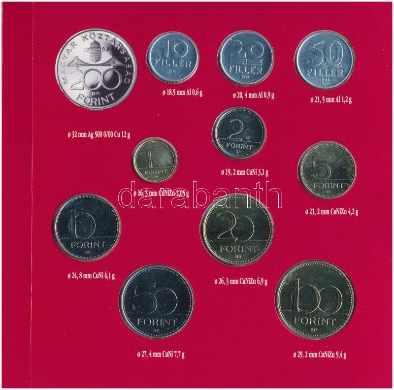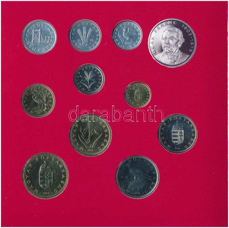 1994. 10f-200Ft (11xklf) forgalmi sor dísztokban, közte 1994. 200Ft Ag "Deák", "Magyarország pénzérméi" sorozat. A tokon a ragasztás részben elengedett. T:BU Adamo FO27.2