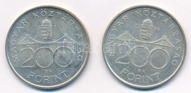 1994. 200Ft Ag "Deák" (2x) T:1-,2 patina