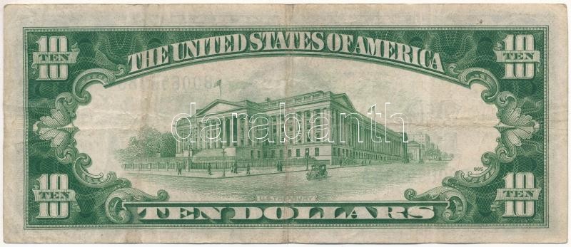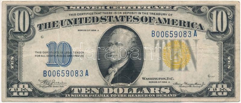 Amerikai Egyesült Államok 1934-1945. (1934A) 10$ "Silver Certificate - kisméretű", sárga pecsét, "William Alexander Julian - Henry Morgenthau Jr." T:III