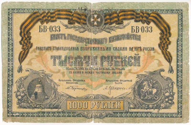 Orosz Polgárháború / Dél-Oroszország / Wrangel Hadserege 1919. 1000R T:III- több szakadás