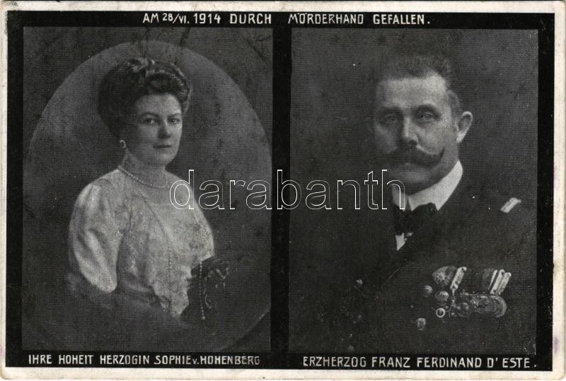 Ihre Hoheit Herzogin Sophie v. Hohenberg, Erzherzog Franz Ferdinand d'Este. Am 28/VI. 1914. durch Mörderhand gefallen / Ferenc Ferdinánd trónörökös és Hohenberg Zsófia hercegnő gyászlapja / Archduke Franz Ferdinand of Austria, Sophie, Duchess of Hohenberg. obituary card (EK)
