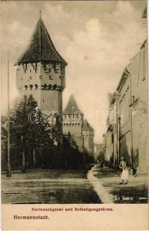 1912 Nagyszeben, Hermannstadt, Sibiu; Harteneckgasse und Befestigungst... https://www.darabanth.com/de/408-Fernauktion/408.0/Ansichtskarten/Siebenburgen~1500006/1912-Nagyszeben-Hermannstadt-Sibiu-Harteneckgasse-und-Befestigungsturme-Harteneck-utca-torony~II2522584