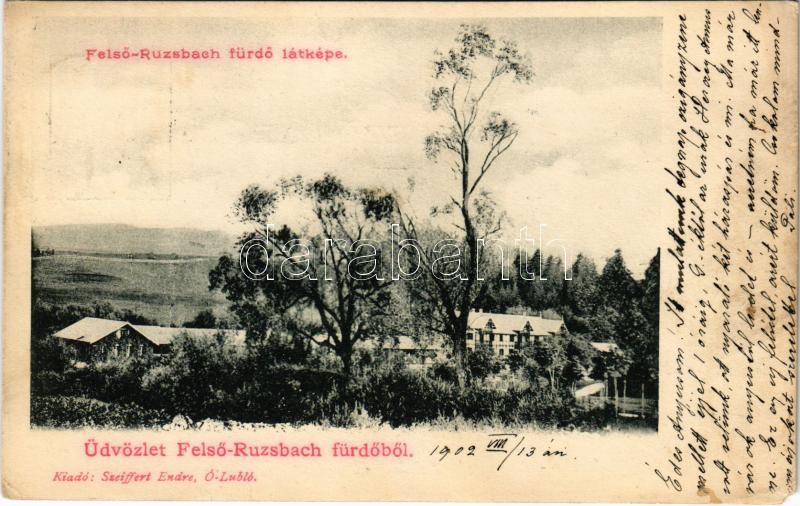 1902 Felsőzúgó-fürdő, Ruzsbachfürdő, Bad Ober Rauschenbach, Kúpele Vys... https://www.darabanth.com/de/408-Fernauktion/408.0/Ansichtskarten/Slowakei~1500007/1902-Felsozugo-furdo-Ruzsbachfurdo-Bad-Ober-Rauschenbach-Kupele-Vysne-Ruzbachy-latkep~II2528667