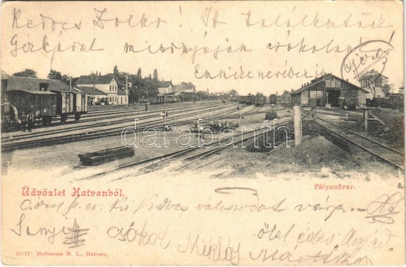 1902 Hatvan, Pályaudvar, vasútállomás, vonat. Hoffmann M. L. kiadása (... https://www.darabanth.com/de/408-Fernauktion/408.0/Ansichtskarten/Ungarn~1500005/1902-Hatvan-Palyaudvar-vasutallomas-vonat-Hoffmann-M-L-kiadasa-EB~II2429435