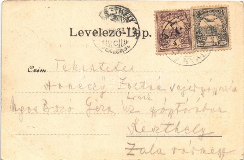 Beschreibung: 1902 Hatvan, Pályaudvar, vasútállomás, vonat. Hoffmann M. L. kiadása (EB)
