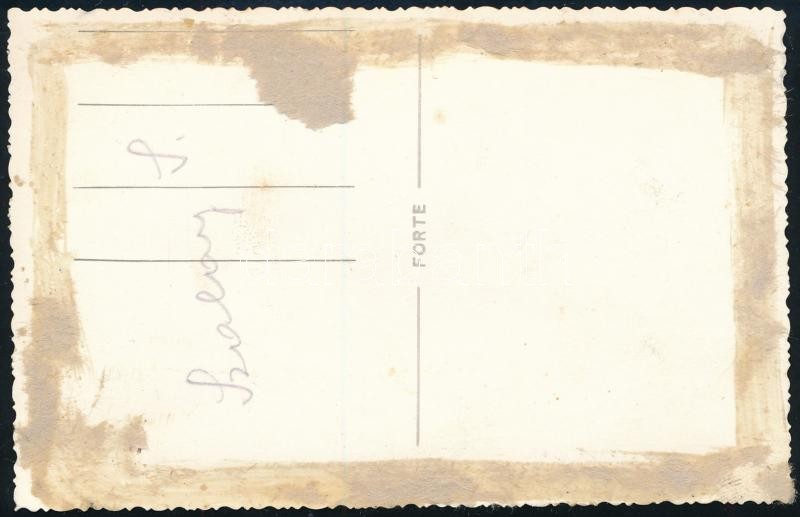 Beschreibung: Kisdobos és úttörő egyenruhás fiatalok, színezett fotó, 13,5×8,5 cm