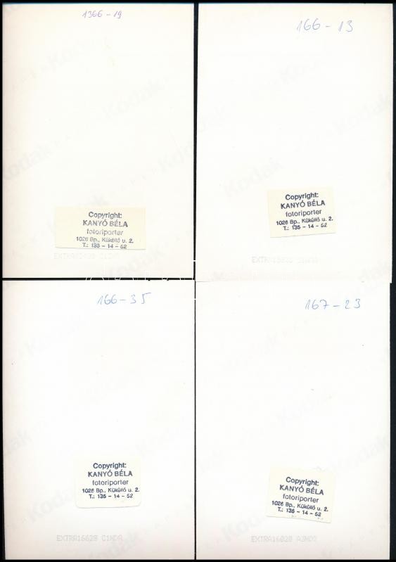 Beschreibung: cca 1995 Pitti Katalin (1951) operaénekesnőről készült 4 db vintage fotó, Kanyó Bála fotóriporter pecsétjével jelzett, 15x10,5 cm