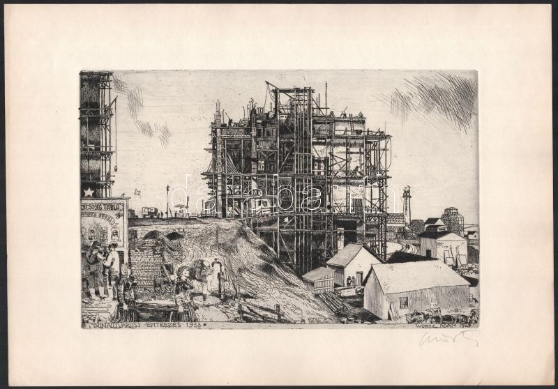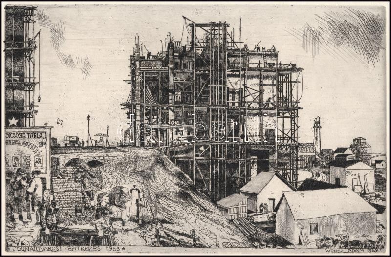 Würtz Ádám (1927-1994): Dunaújvárosi építkezés, 1953. Rézkarc, papír, ... https://www.darabanth.com/de/408-Fernauktion/408.0/Gemalde-und-Grafiken/Gemalde-und-Grafiken~1/Wurtz-Adam-1927-1994-Dunaujvarosi-epitkezes-1953-Rezkarc-papir-jelzett-lapszeli-a~II2531011