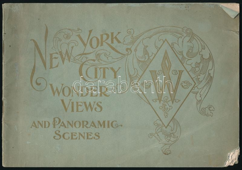cca 1900-1910 New York City Wonder Views and Panoramic Scenes / New York-i látképek, album fekete-fehér fotókkal, 20 p., tűzött papírkötés, kissé foltos, sérült, sarkán egérrágott, 26x18 cm
