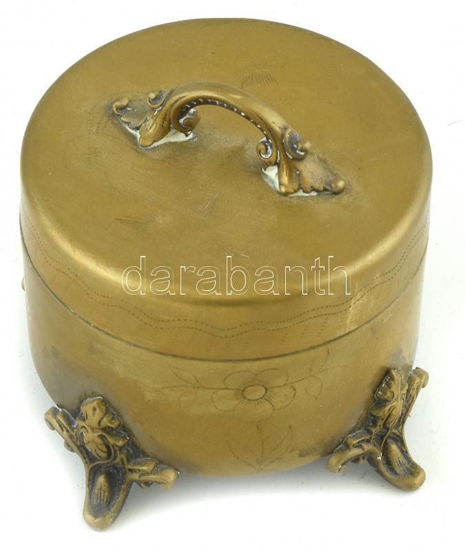 Alpakka díszes cukordobot, erősen kopott, jelzett, d: 10,5cm https://www.darabanth.com/de/408-Fernauktion/408.0/Kunst-Dokumente-andere-Sammelgebiete/Flohmarkt~12/Alpakka-diszes-cukordobot-erosen-kopott-jelzett-d-10-5cm~II2531103