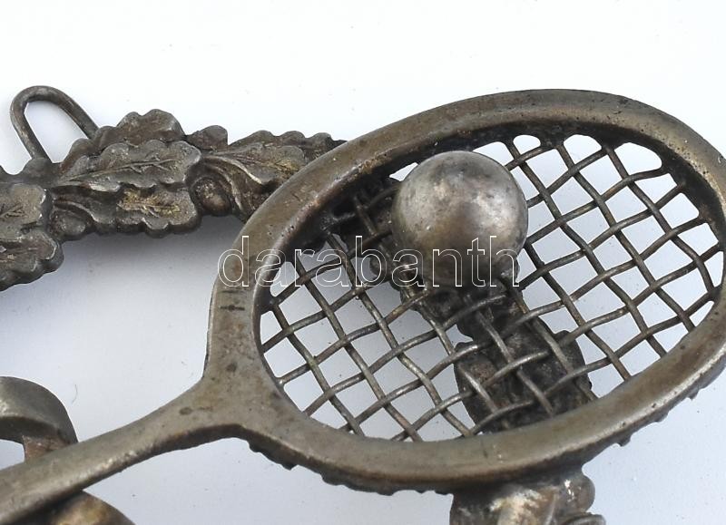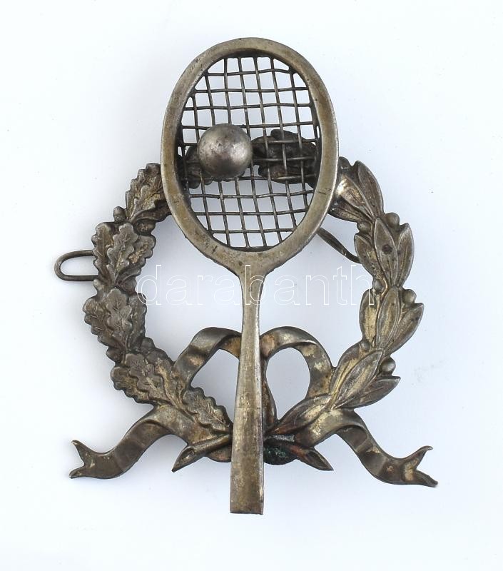Ezüstözött tenisz jelvény, jelzés nélkül, kopott, 6x5cm https://www.darabanth.com/de/408-Fernauktion/408.0/Kunst-Dokumente-andere-Sammelgebiete/Flohmarkt~12/Ezustozott-tenisz-jelveny-jelzes-nelkul-kopott-6x5cm~II2526804