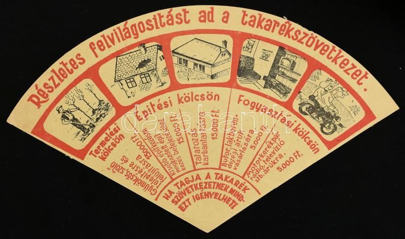 Takarékszövetkezet reklámos legyező https://www.darabanth.com/de/408-Fernauktion/408.0/Kunst-Dokumente-andere-Sammelgebiete/Werbungen~22/Takarekszovetkezet-reklamos-legyezo~II2531945