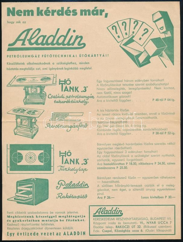 cca 1930 Aladdin petróleumfőző reklám lap https://www.darabanth.com/de/408-Fernauktion/408.0/Kunst-Dokumente-andere-Sammelgebiete/Werbungen~22/cca-1930-Aladdin-petroleumfozo-reklam-lap~II2530957