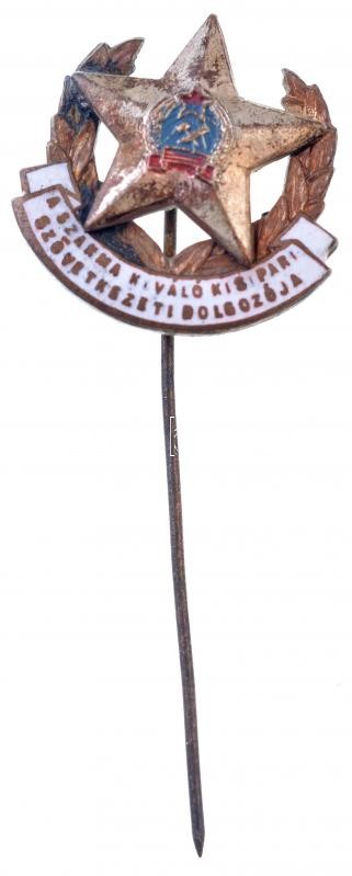1949-1956. "A szakma kiváló kisipari szövetkezeti dolgozója" zománcozott, Rákosi-címeres kitüntető jelvény (21x21mm) T:1-,2 patina