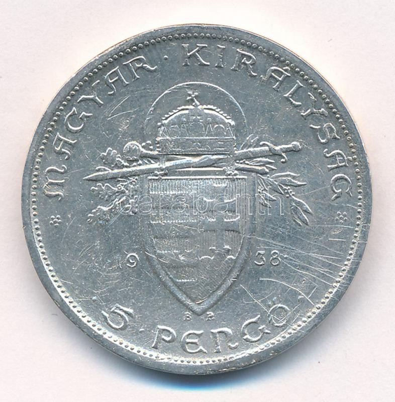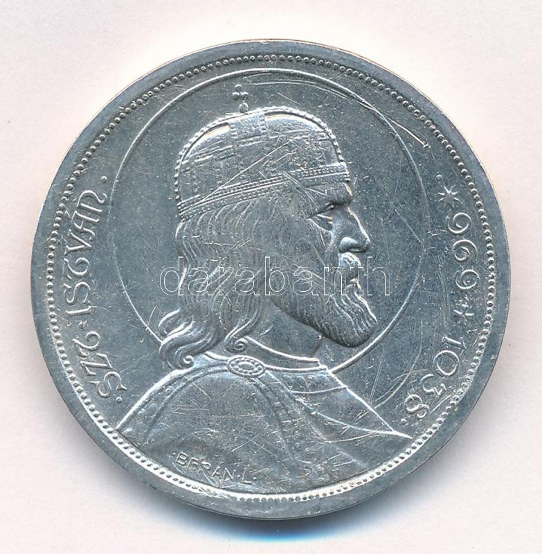 Beschreibung: 1938. 5P Ag "Szent István" T:2 karcok