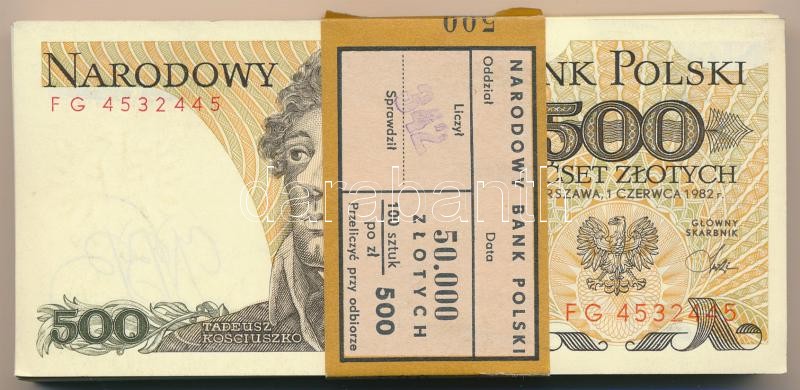 Lengyelország 1982. 500Zl (100x) eredeti kötegelővel, közte sorszámkövetők T:I-II