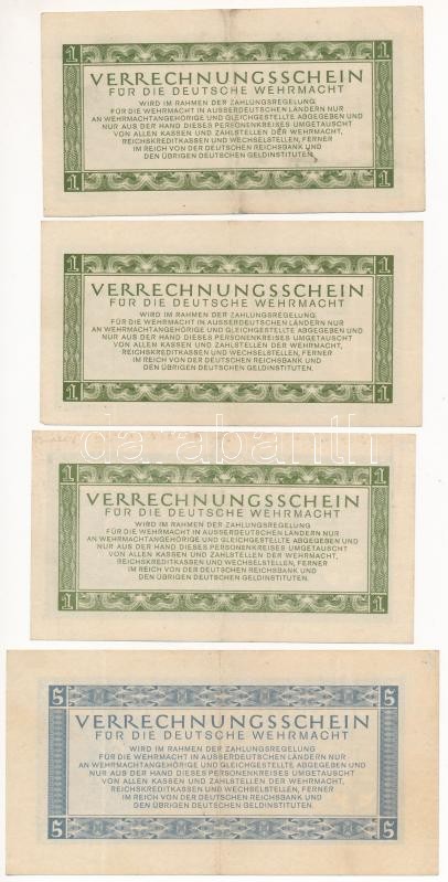 German Third Empire 1944. 1 Reichsmark (3x) + 5 Reichsmark "Clearing note for the German Wehrmacht (Verrechnungsschein für die Deutsche Wehrmacht)" C:XF-F nice paper, number written with a pen in the upper left corner