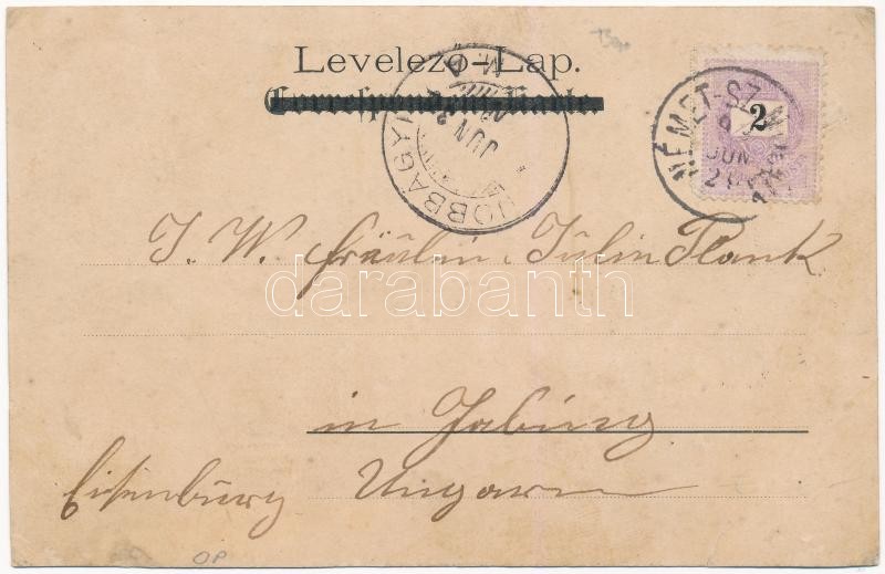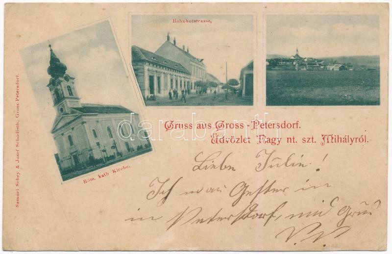 1899 (Vorläufer) Nagyszentmihály, Nagy-Német-Szentmihály, Großpetersdorf; Röm. kath. Kirche, Bahnhofstrasse / templom, Vasút utca / church, street (EB)