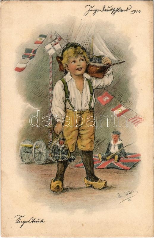 Beschreibung: 6 db régi művészlap Paul Heydel aláírásával / 6 pre-1945 litho art postcards signed by Paul Heydel, "Jung Deutschland"