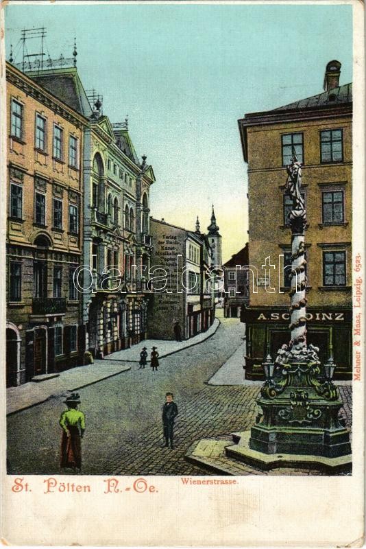 Sankt Pölten, Wienerstrasse / street, shop, statue https://www.darabanth.com/de/409-Fernauktion/409.0/Ansichtskarten/Osterreich~1000019/Sankt-Polten-Wienerstrasse-street-shop-statue~II2540346