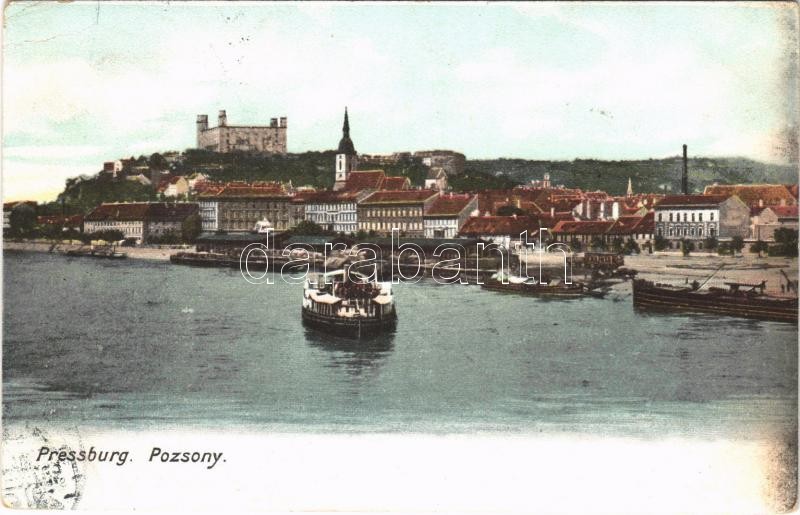 1907 Pozsony, Pressburg, Bratislava; vár, rakpart, gőzhajó. Heliocolor... https://www.darabanth.com/de/409-Fernauktion/409.0/Ansichtskarten/Slowakei~1000007/1907-Pozsony-Pressburg-Bratislava-var-rakpart-gozhajo-Heliocolorkarte-von-Ottmar-Zieher-c~II2425275