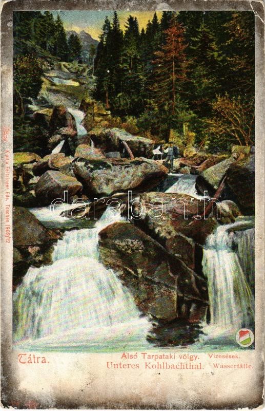 1908 Tátra, Magas-Tátra, Vysoké Tatry; Alsó Tarpataki-völgy, vízesések. Feitzinger Ede 1902/12. / Unteres Kohlbachtal, Wasserfälle / Studená dolina / valley, waterfall (EK)