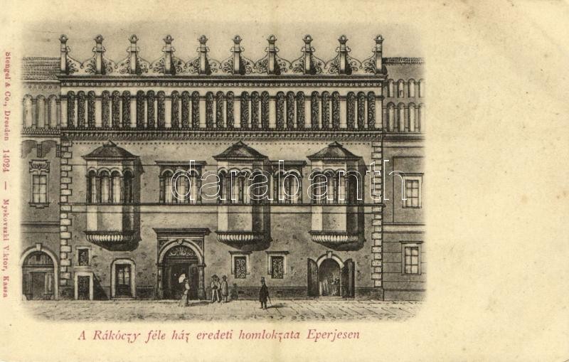 Beschreibung: Eperjes, Presov; Rákóczi féle ház eredeti homlokzata. Kiadja Myskovszki Viktor / original facade of the Rákóczi mansion