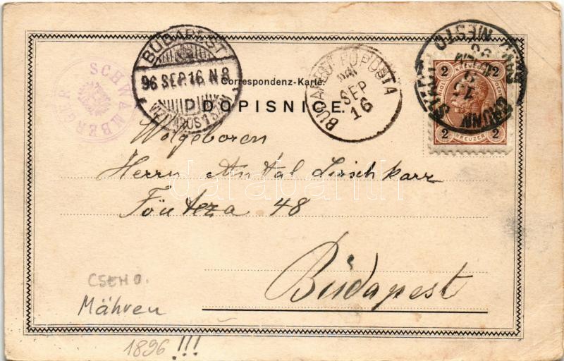 Beschreibung: 1896 (Vorläufer!) Macocha, Sloup, Sosuvka / gorge. Art Nouveau, floral (EB)
