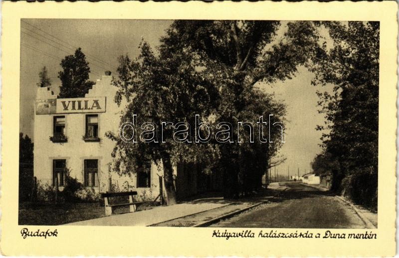 Budapest XXII. Budafok, Kutyavilla halászcsárda a Duna mentén https://www.darabanth.com/de/409-Fernauktion/409.0/Ansichtskarten/Ungarn~1000005/Budapest-XXII-Budafok-Kutyavilla-halaszcsarda-a-Duna-menten~II2539537
