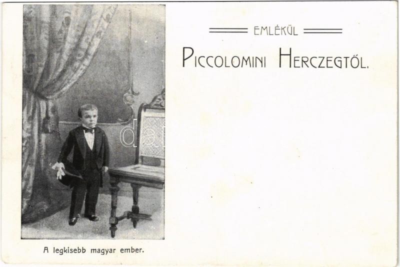 Emlékül Piccolomini hercegtől. A legkisebb magyar ember (EM) https://www.darabanth.com/de/409-Fernauktion/409.0/Ansichtskarten/Zirkus~1000034/Emlekul-Piccolomini-hercegtol-A-legkisebb-magyar-ember-EM~II2538570