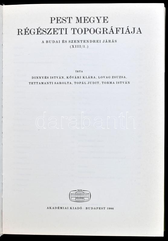 Dinnyés István-Kővári Klára-Lovag Zsuzsa-Tettamanti Sarolta-Topál Judit-Torma István: Pest megye régészeti topográfiája. A budai és szentendrei járás. (XIII/1.) Szerk.: Torma István. Magyarország régészeti topográfiája 7. köt. Bp., 1986., Akadémiai Kiadó, 389+3 p.+66 (fekete-fehér képanyag) t. + 1 (kihajtható térkép)+6 (térkép-mellekletek, 3 levélen) t. Szövegközti térkép vázlatokkal illusztrált.