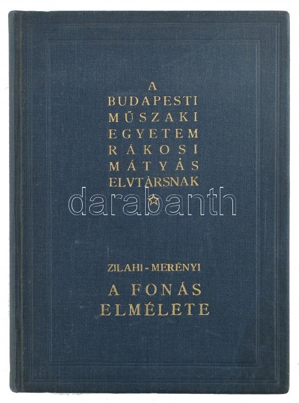 Zilahi Márton-Merényi Gábor: A fonás elmélete. Bp., 1951., Könnyűipari Kiadó. Kiadói aranyozott egészvászon-kötés, a borítón: "A Budapesti Műszaki Egyetem Rákosi Mátyás Elvtársnak" felirattal, a címlap és az utolsó lap javított, intézményi bélyegzéssel. Megjelent 1700 példányban.
