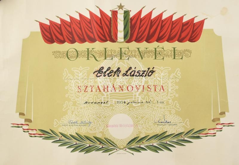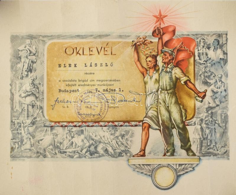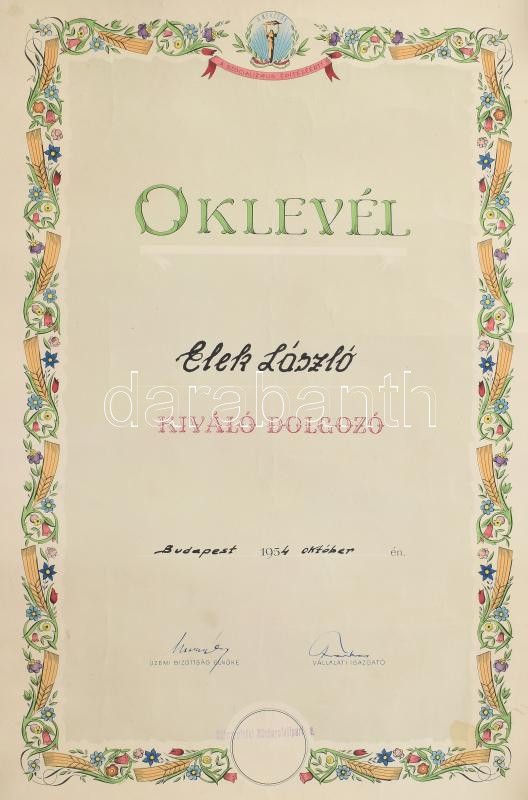 1954-1967 3 db díszes, illusztrált szocialista oklevél, feltekerve, sé... https://www.darabanth.com/de/409-Fernauktion/409.0/Kunst-Dokumente-andere-Sammelgebiete/Dokument~500018/1954-1967-3-db-diszes-illusztralt-szocialista-oklevel-feltekerve-serulesekkel~II2539476