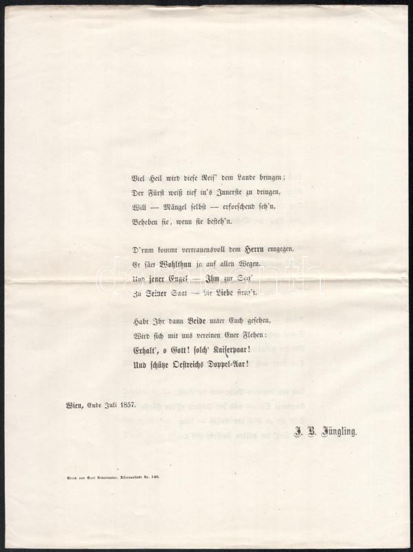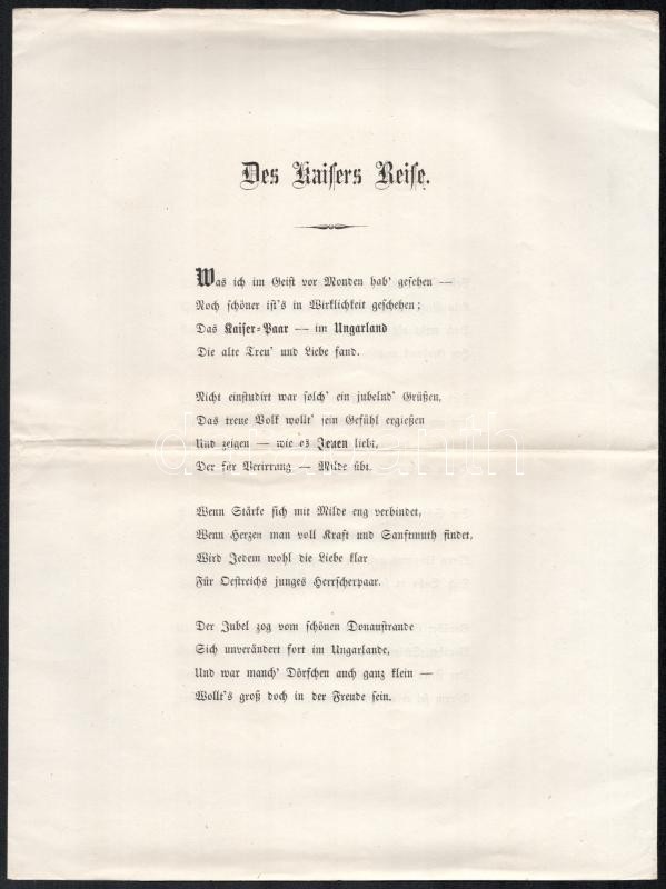 1857 Des Kaisers Reise 1856 u. 1857. A császárék utazása. J. B. Jüngli... https://www.darabanth.com/de/409-Fernauktion/409.0/Kunst-Dokumente-andere-Sammelgebiete/Drucksachen~2000003/1857-Des-Kaisers-Reise-1856-u-1857-A-csaszarek-utazasa-J-B-Jungling-verse-az-osztrak-bir~II2542054