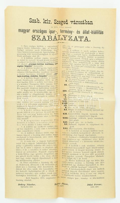 1876 Szeged országos ipar- termény- és állat kiállítás szabályzata 25x... https://www.darabanth.com/de/409-Fernauktion/409.0/Kunst-Dokumente-andere-Sammelgebiete/Drucksachen~2000003/1876-Szeged-orszagos-ipar-termeny-es-allat-kiallitas-szabalyzata-25x42-cm~II2541606