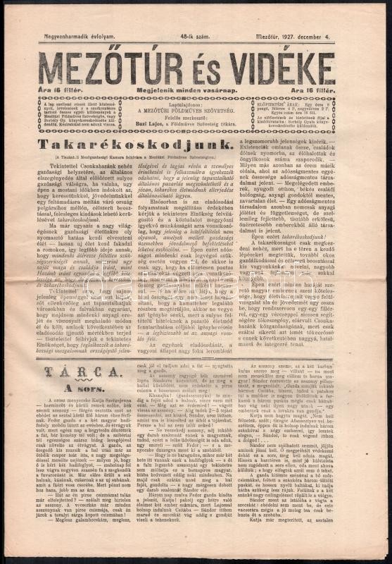 1927 Mezőtúr és vidéke. 43. évf. 1927. dec. 4. Mezőtúr, 1927, Borbély ... https://www.darabanth.com/de/409-Fernauktion/409.0/Kunst-Dokumente-andere-Sammelgebiete/Drucksachen~2000003/1927-Mezotur-es-videke-43-evf-1927-dec-4-Mezotur-1927-Borbely-Gyula-8-p~II2536386