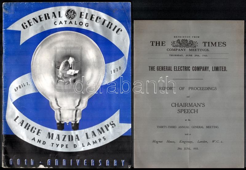 1933-1938 A General Electric 2 db kiadványa, 8 p.+35 p., angol nyelven, az egyik fekete-fehér fotókkal illusztrált. Tűzött papírkötés, kissé sérült, foltos.