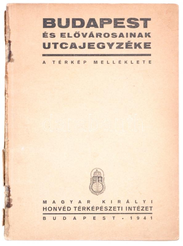 1941 Budapest és elővárosainak utcajegyzéke. A térkép melléklete. Bp.,... https://www.darabanth.com/de/409-Fernauktion/409.0/Kunst-Dokumente-andere-Sammelgebiete/Drucksachen~2000003/1941-Budapest-es-elovarosainak-utcajegyzeke-A-terkep-melleklete-Bp-Honved-Terkepeszet~II2010389