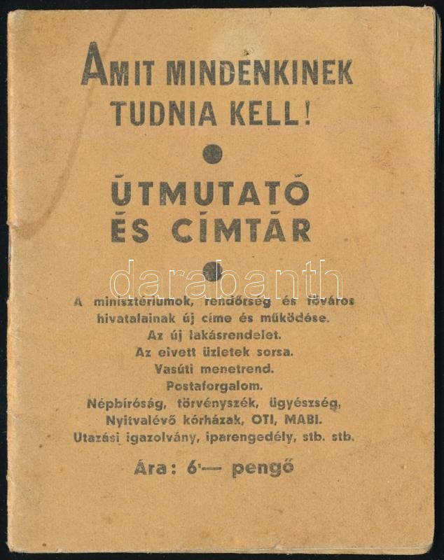 1945 Amit mindenkinek tudnia kell. Budapesti útmutató a háború utáni h... https://www.darabanth.com/de/409-Fernauktion/409.0/Kunst-Dokumente-andere-Sammelgebiete/Drucksachen~2000003/1945-Amit-mindenkinek-tudnia-kell-Budapesti-utmutato-a-haboru-utani-hetek-berendezkedeserol~II2539187