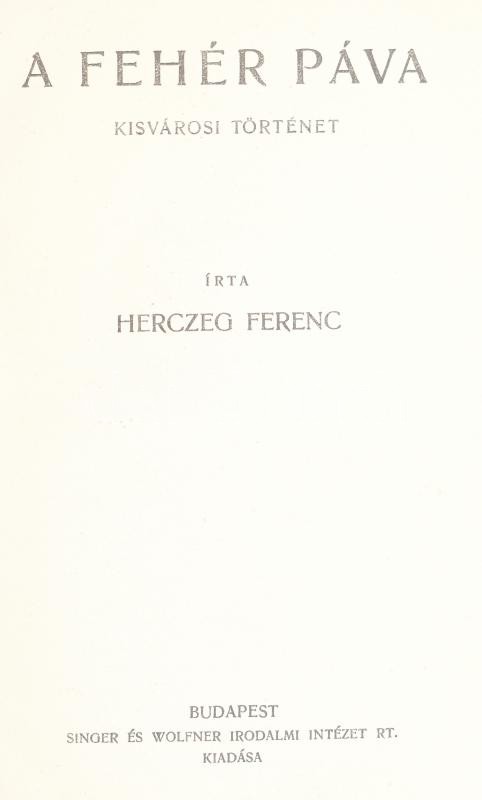 Herczeg Ferenc válogatott munkáinak 4 kötete: A fehér páva; A híd; Árva László király; Mink és ők. Herczeg Ferenc válogatott munkáinak emlékkiadása 7., 10., 11. és 16. köt. Bp., 1933, Singer és Wolfner. Kiadói aranyozott, dombornyomott egészvászon-kötés, kopott, kissé foltos borítóval.