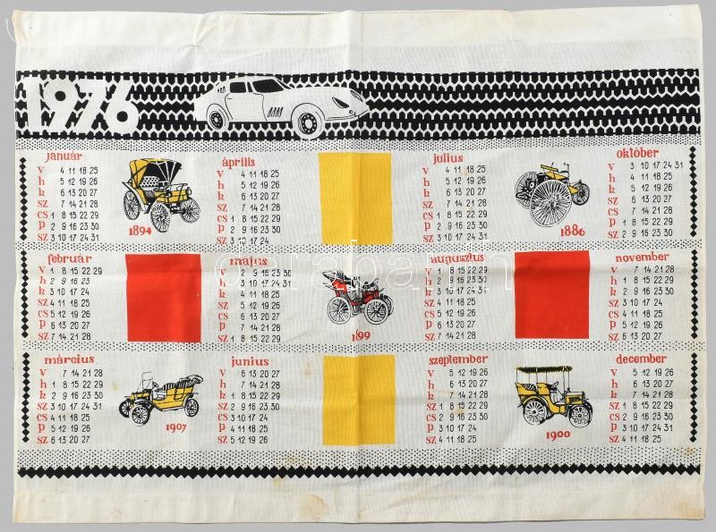 1976 Autós, szőtt falinaptár 66x44 cm https://www.darabanth.com/de/409-Fernauktion/409.0/Kunst-Dokumente-andere-Sammelgebiete/Flohmarkt~500012/1976-Autos-szott-falinaptar-66x44-cm~II2537650