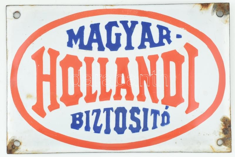 cca 1930 Magyar-Hollandi Biztosító domború zománctábla, szélén zománch... https://www.darabanth.com/de/409-Fernauktion/409.0/Kunst-Dokumente-andere-Sammelgebiete/Flohmarkt~500012/cca-1930-Magyar-Hollandi-Biztosito-domboru-zomanctabla-szelen-zomanchiannyal-12C39718-cm~II2540226