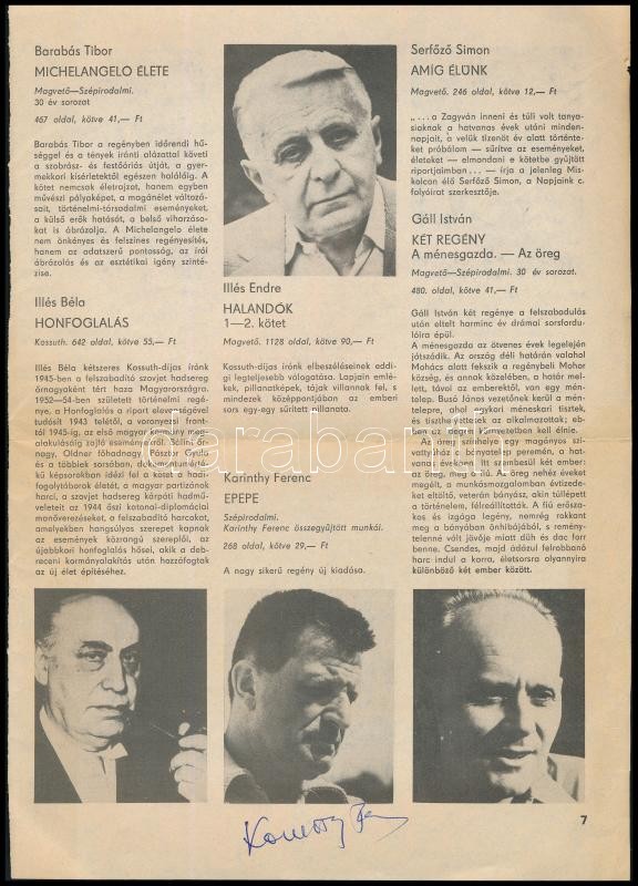 Beschreibung: Karinthy Ferenc és Karinthy Márton írók autográf aláírása újságkivágáson