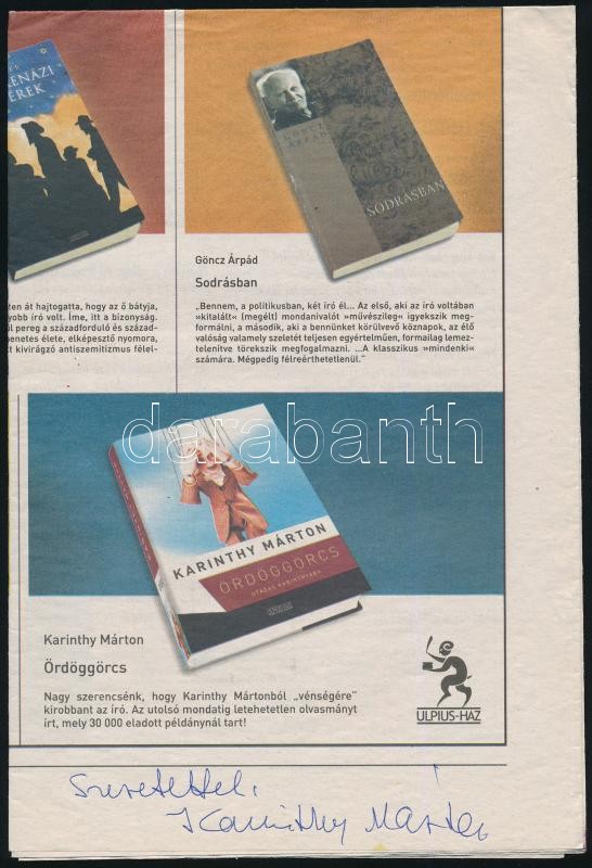 Karinthy Ferenc és Karinthy Márton írók autográf aláírása újságkivágás... https://www.darabanth.com/de/409-Fernauktion/409.0/Kunst-Dokumente-andere-Sammelgebiete/Signatur~500020/Karinthy-Ferenc-es-Karinthy-Marton-irok-autograf-alairasa-ujsagkivagason~II2539413